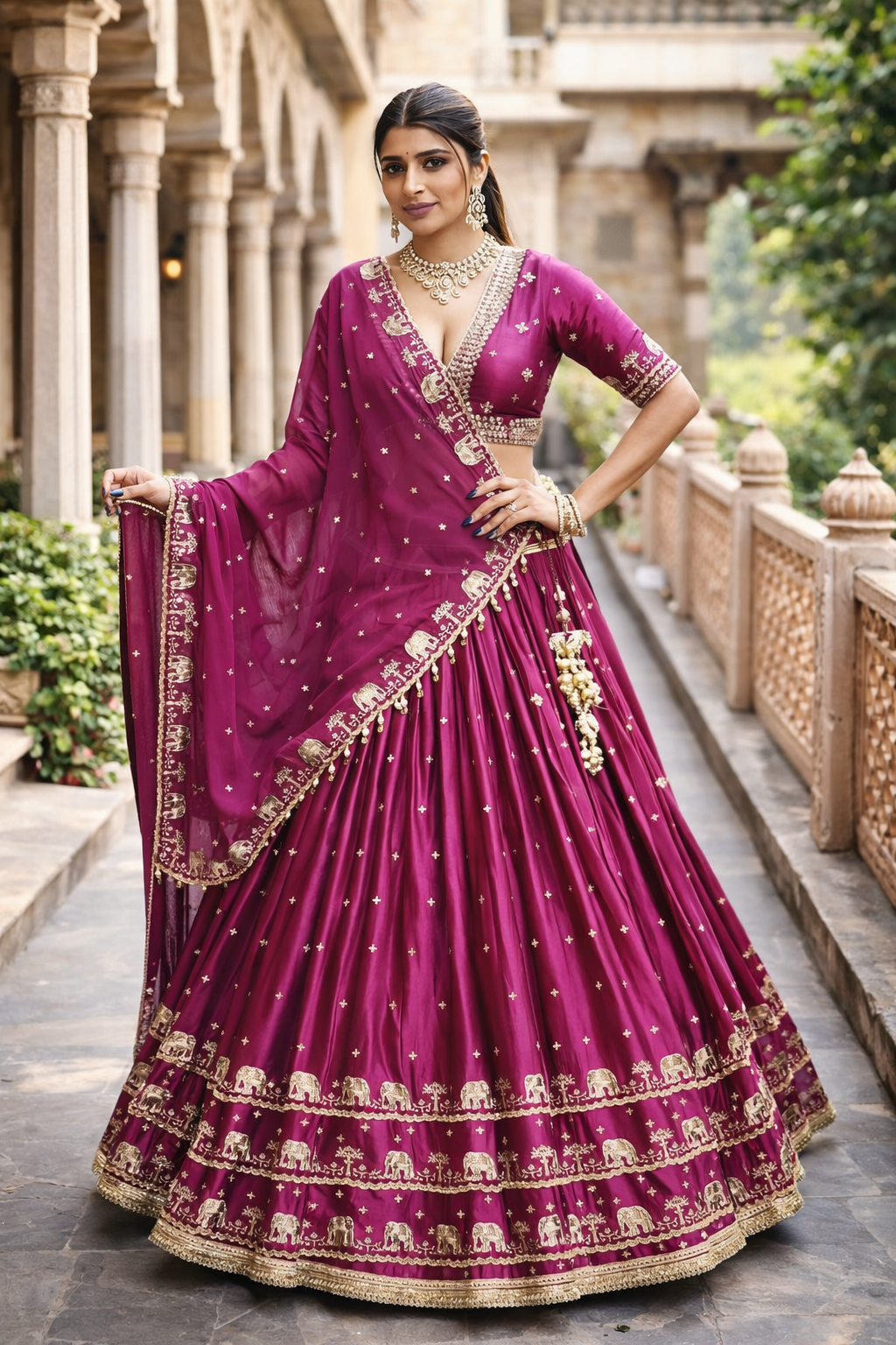 An ethereal white lehenga adorned with intricate shimmer embroidery, paired with a delicately embellished blouse and sheer dupatta — perfect for receptions, engagements, and statement wedding looks.